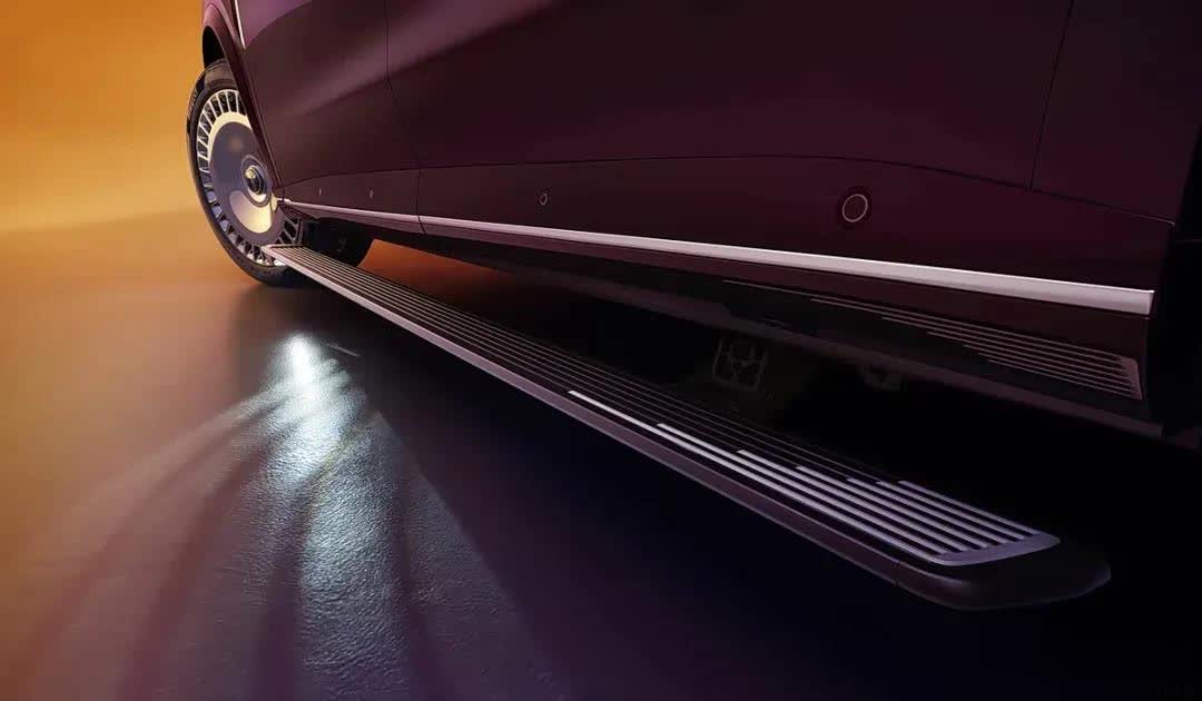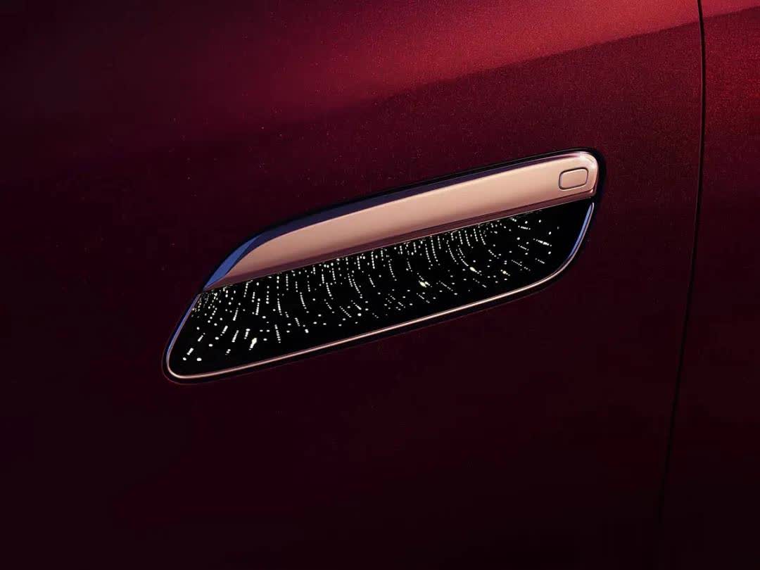 车侧腰线没有太大的起伏,像是一根直线穿过车身中部,如果你选择双色车身,会让车辆显得更修长。车辆将提供类似尊界的摘星半隐藏式门把手,既能减低风阻,又不像隐藏式把手那样“过分年轻”。毕竟岚图泰山的车格在那边呢!车辆还提供多辐放射状和大饼型镀铬轮圈,从图片上看来,大饼轮圈可能比较适合这辆车的造型。此外,它还提供了电动踏板,方便乘客上下车。